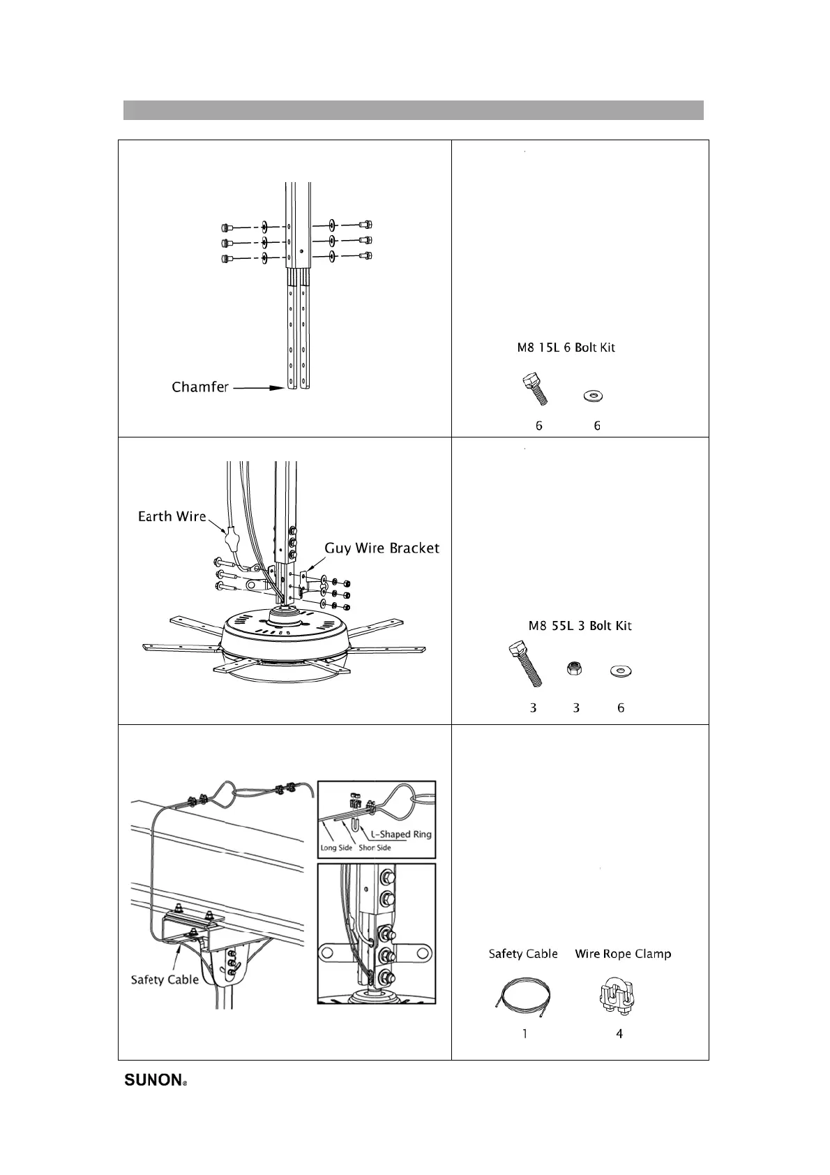 SUNON 3 Series - Installation Method: Motor and Safety Cable Attachment