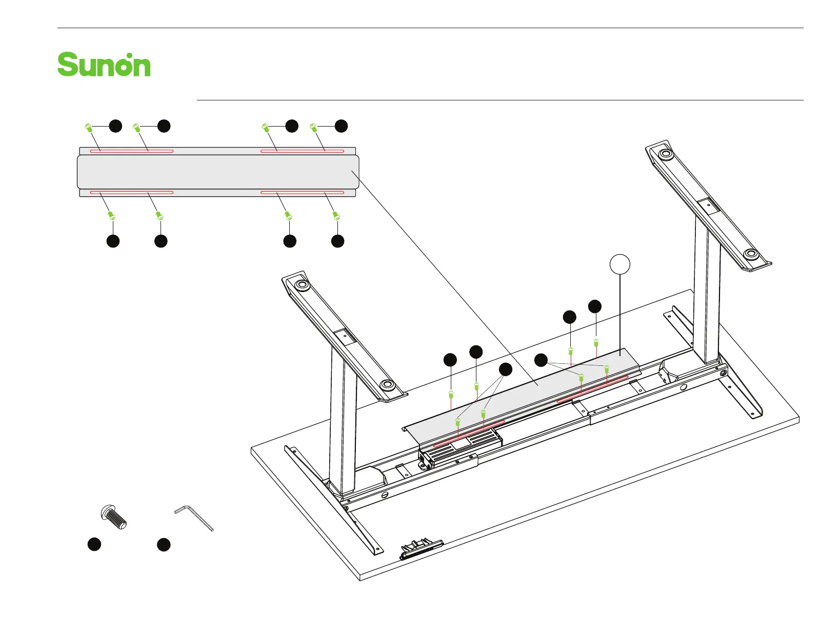 Install the Cable Box Cap on the Central Beam, then fasten it with 8 M6x10 hex screw.