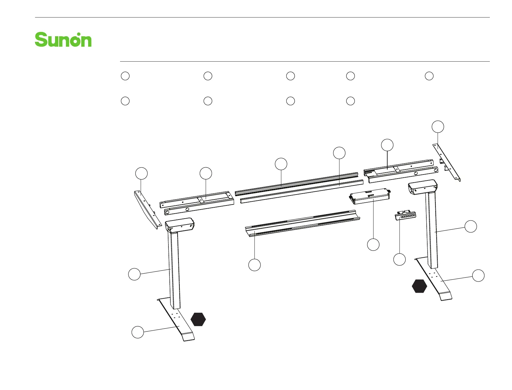These drawings identify the parts included with your Height Adjustable Desk. Some of these parts are