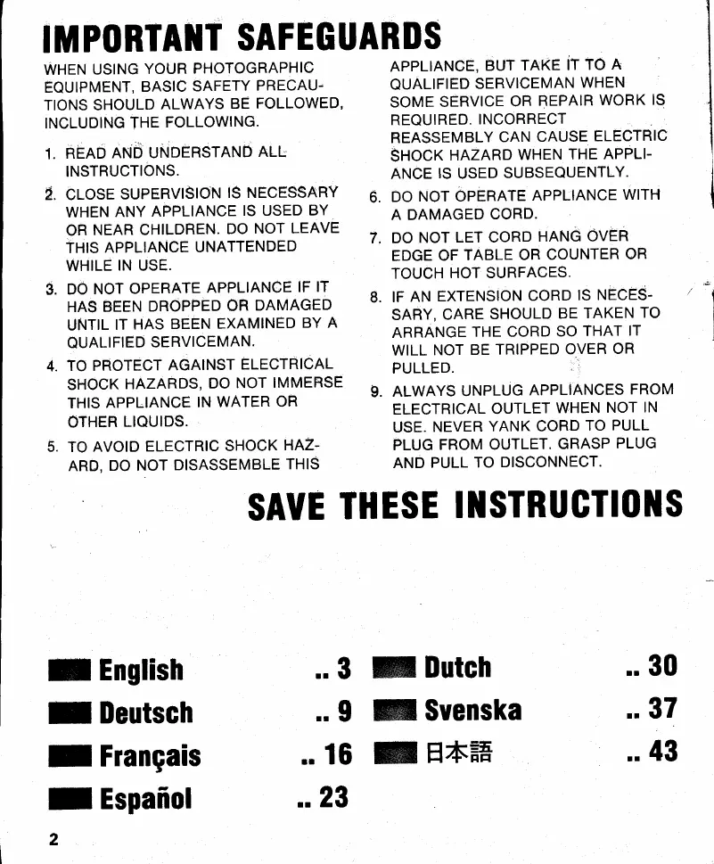 Sunpak auto 433D - Important Safeguards; Read and Understand All Instructions; Supervision Near Children; Operation After Damage