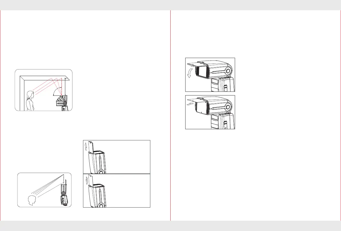 Adjust the flash head tilt, rotation Angle and select the reflection