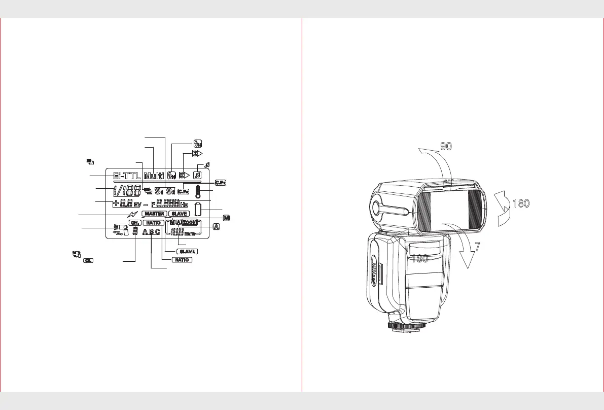 to 180 degrees. Adjust the flash head toward the ceiling or wall can make the