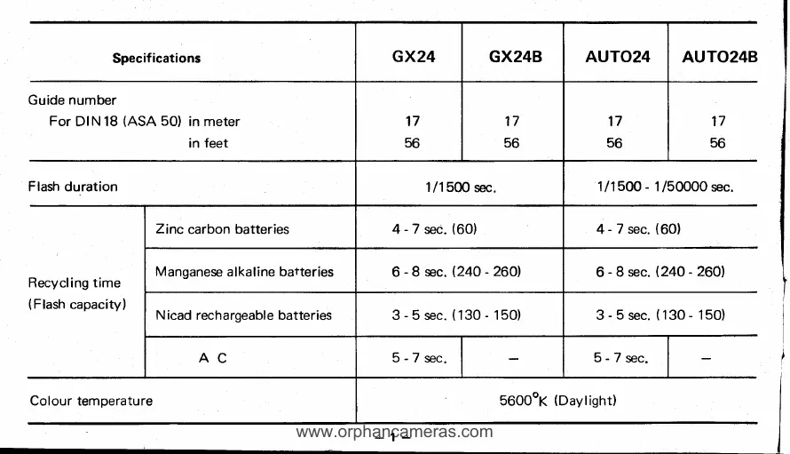 rechargeable batteries 3-5sec.(130-150) 3-5sec.