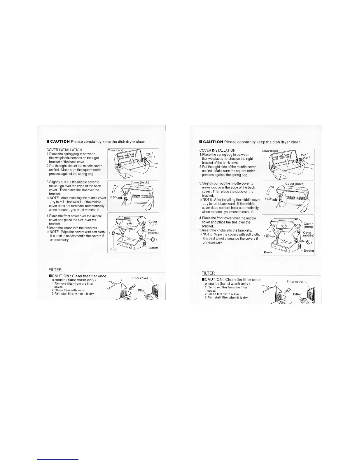 Sunpentown SD-1501 - Cleaning and Maintenance; Cover Installation and Cleaning; Filter Cleaning Procedure