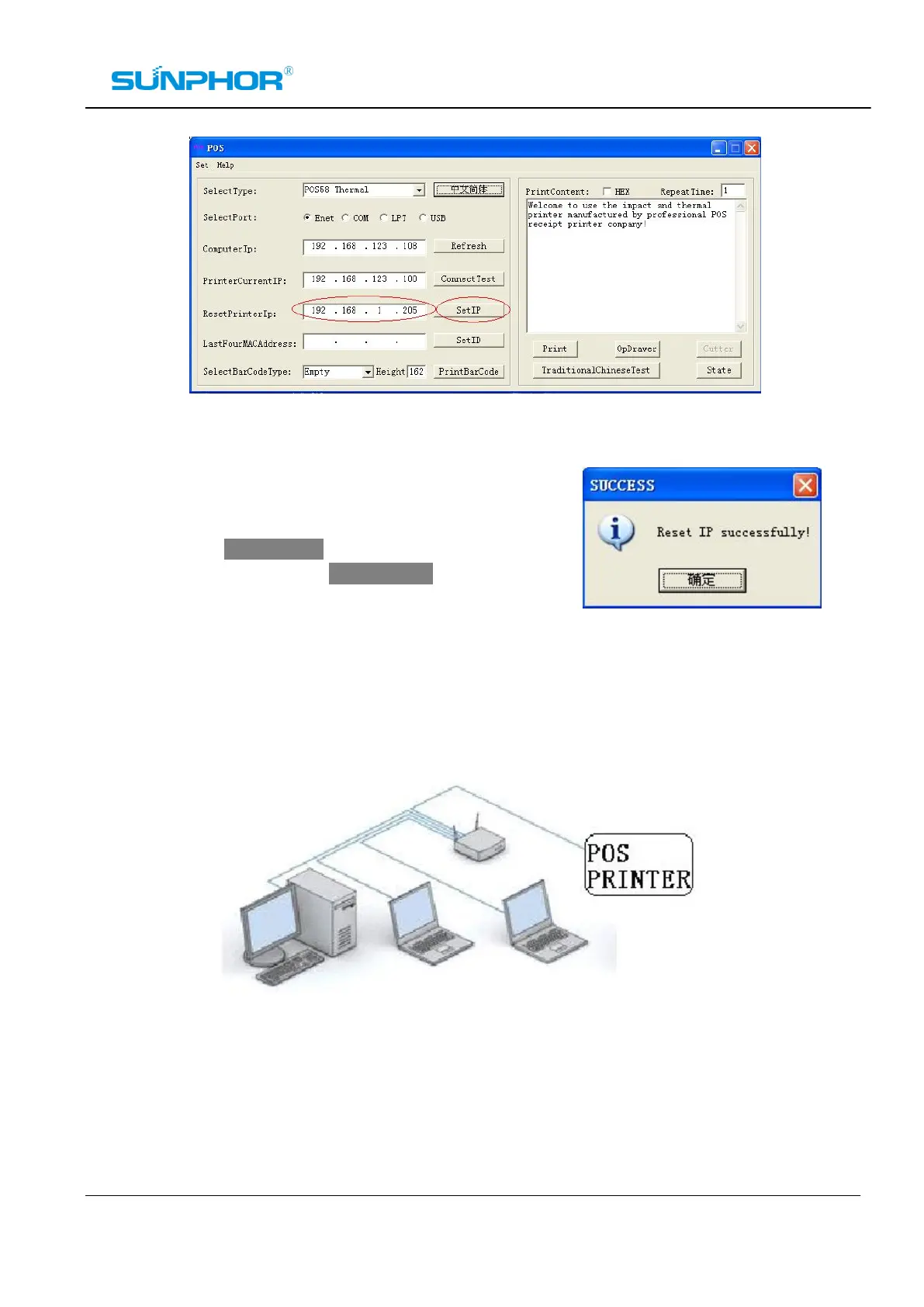 6. Connect the printers and computers to LAN, check if working normally. See the following picture: