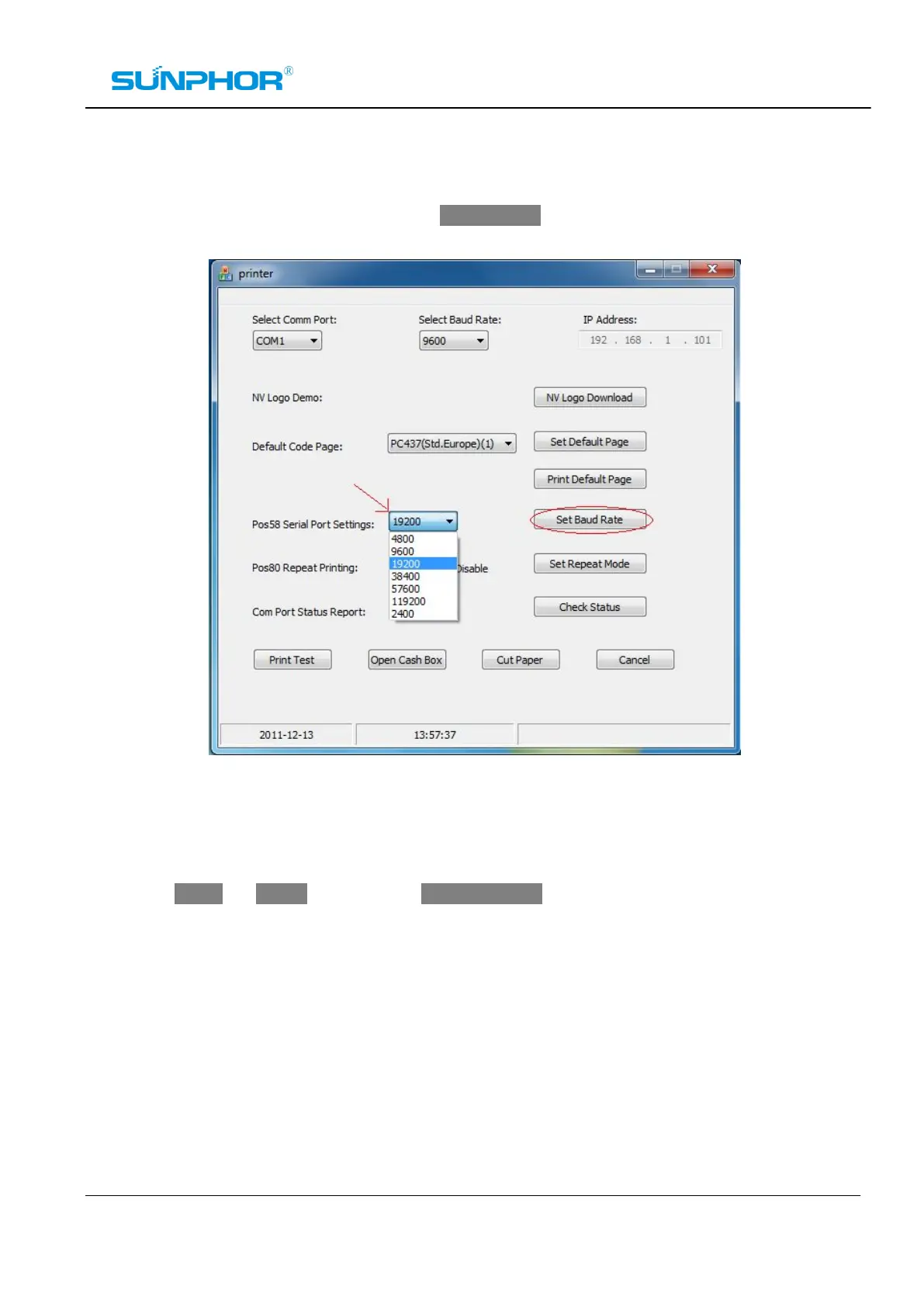 Sunphor SUP58T2 - Set Baud Rate for Pos58