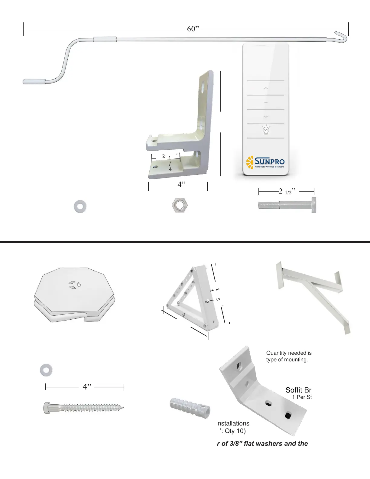Note: Roof mount awnings will have twice the number of 3/8” flat washers and the same