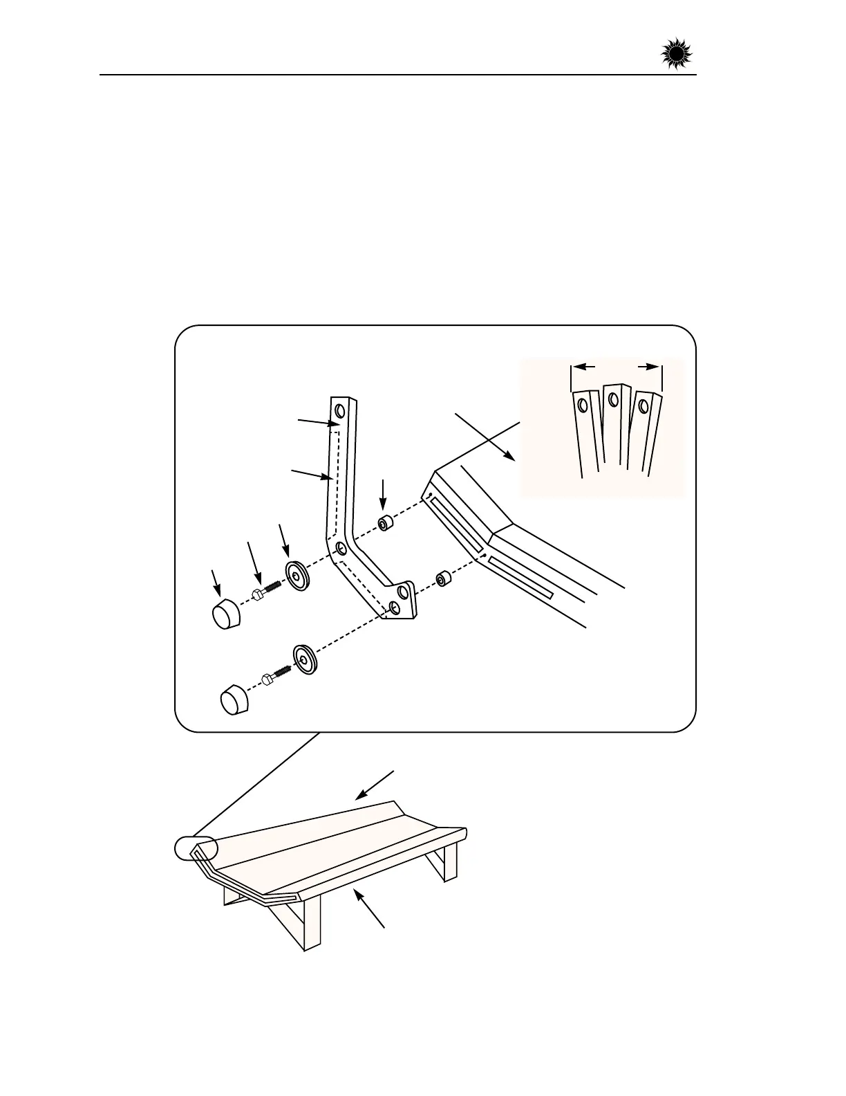 1. Attach the left and right hinge brackets to each side of the bench as shown below,