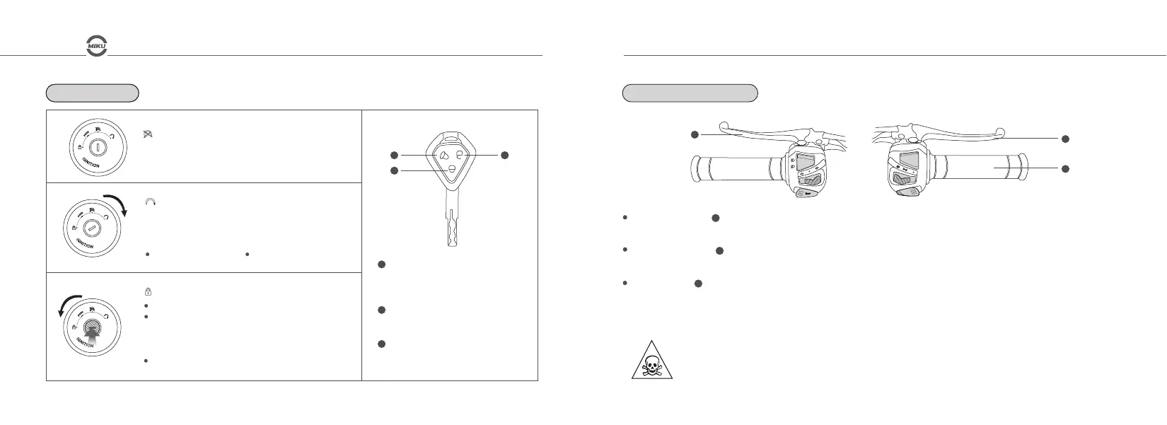 Throttle grip : The rotary throttle grip is on the right handlebar.Accelerate by rotating the throttle towards