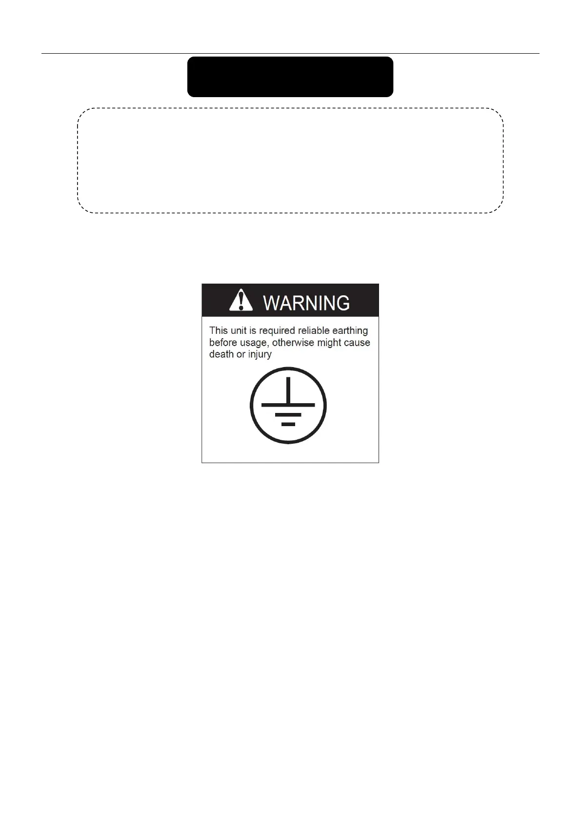 THE UNIT MUST BE EARTHED PROPERLY BEFORE USAGE