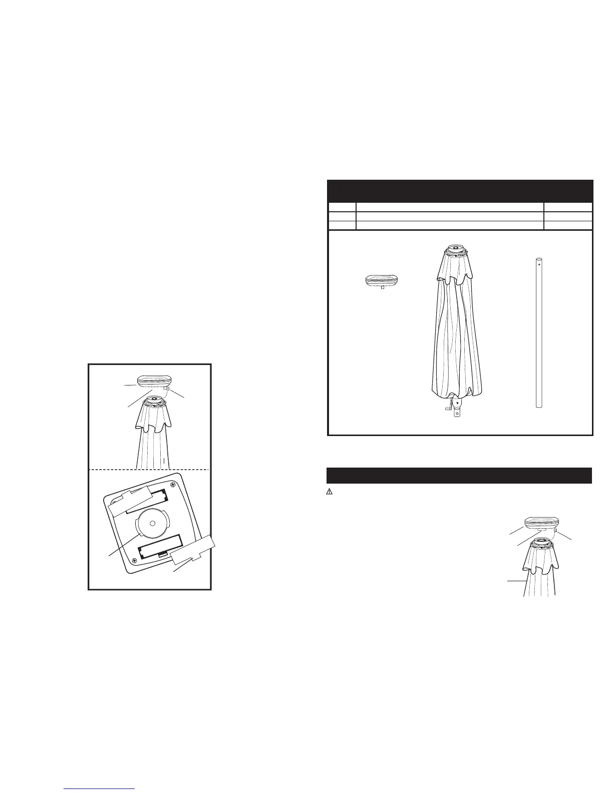 CAUTION: DO NOT INSERT END OF UMBRELLA POLE INTO THE GROUND. The solar umbrella