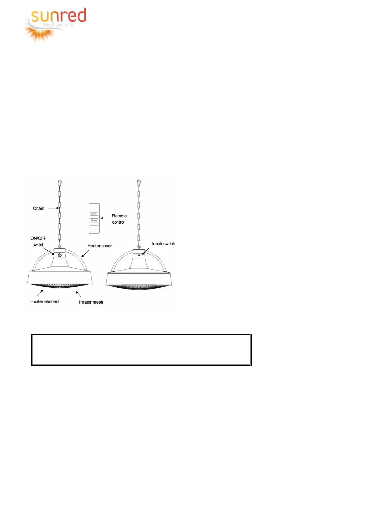 provided. The power cord should not touch the edge of the heater cover.