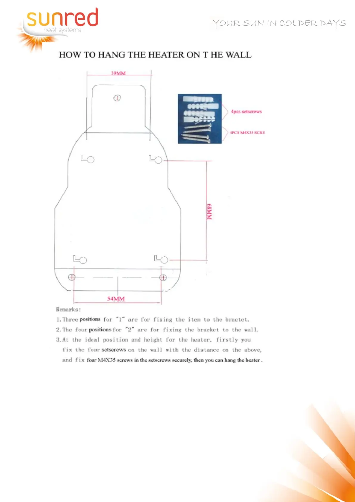 1. De drie bevestigingsplaatsen voor de heater aan de houder zijn gemerkt met “1”.