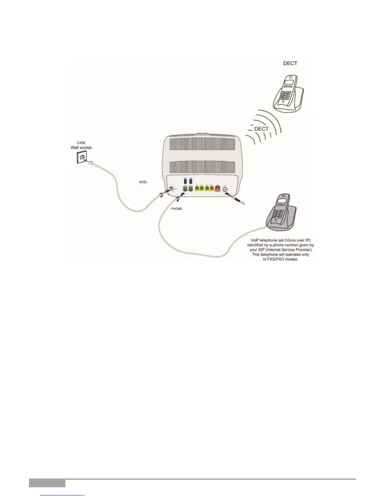 Figure 3.2 - xDSL line / telephone set / Power Supply Connection (Total local loop unbundling)