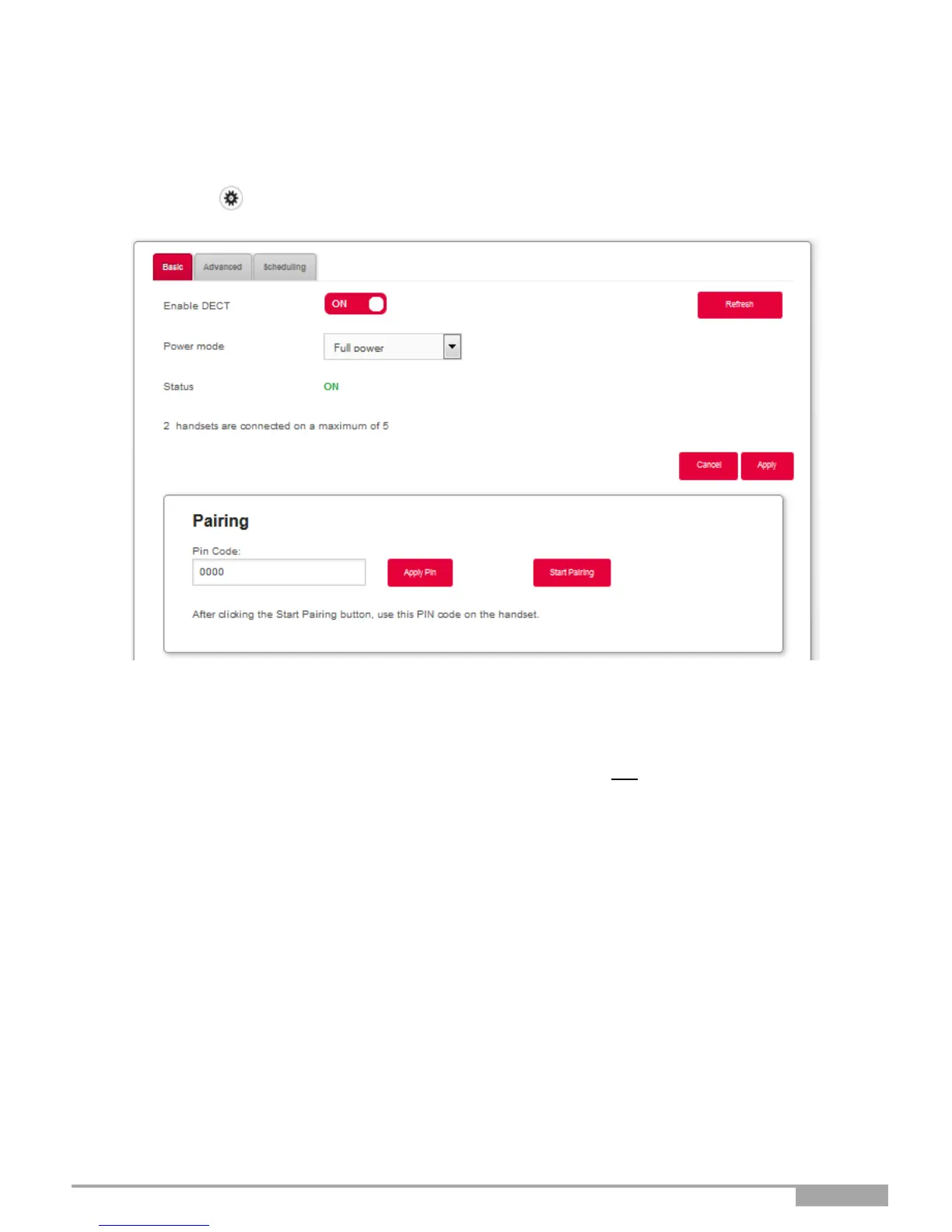 Objective: This menu allows you to pair up to 5 DECT handsets with the built in DECT base of your