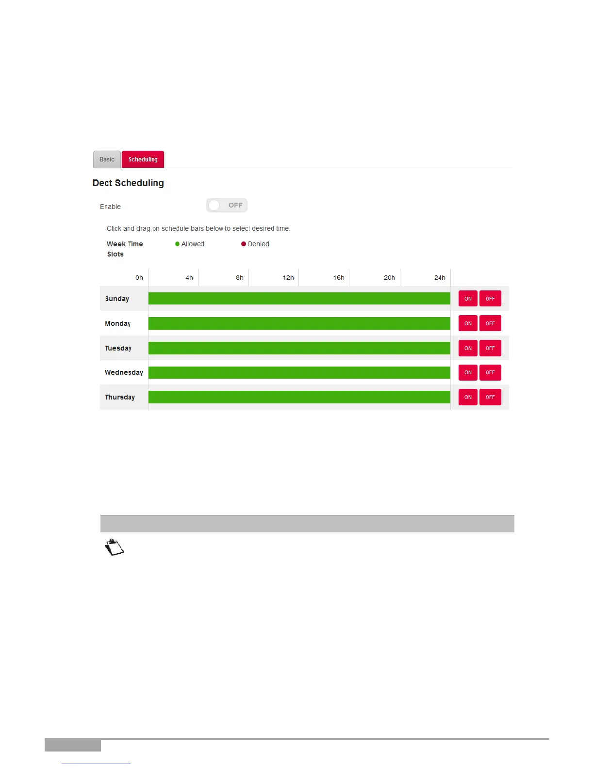 Enable the DECT scheduling feature by pressing the “ON” button.