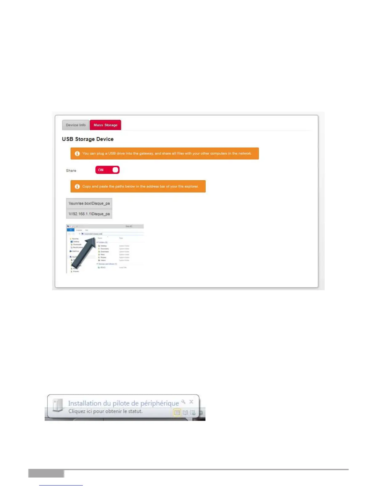 Objective: You can share all files contained on the USB drive connected to the Sunrise Internet Box