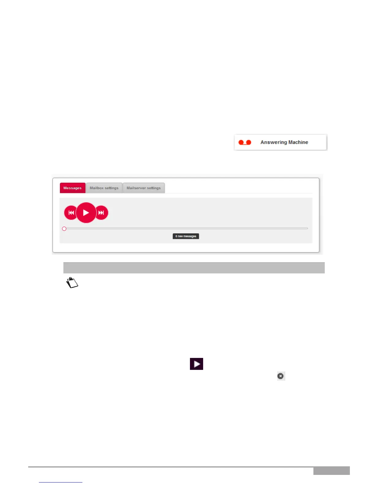 message, the “new” flag” is removed. You can delete the message by pressing the button.