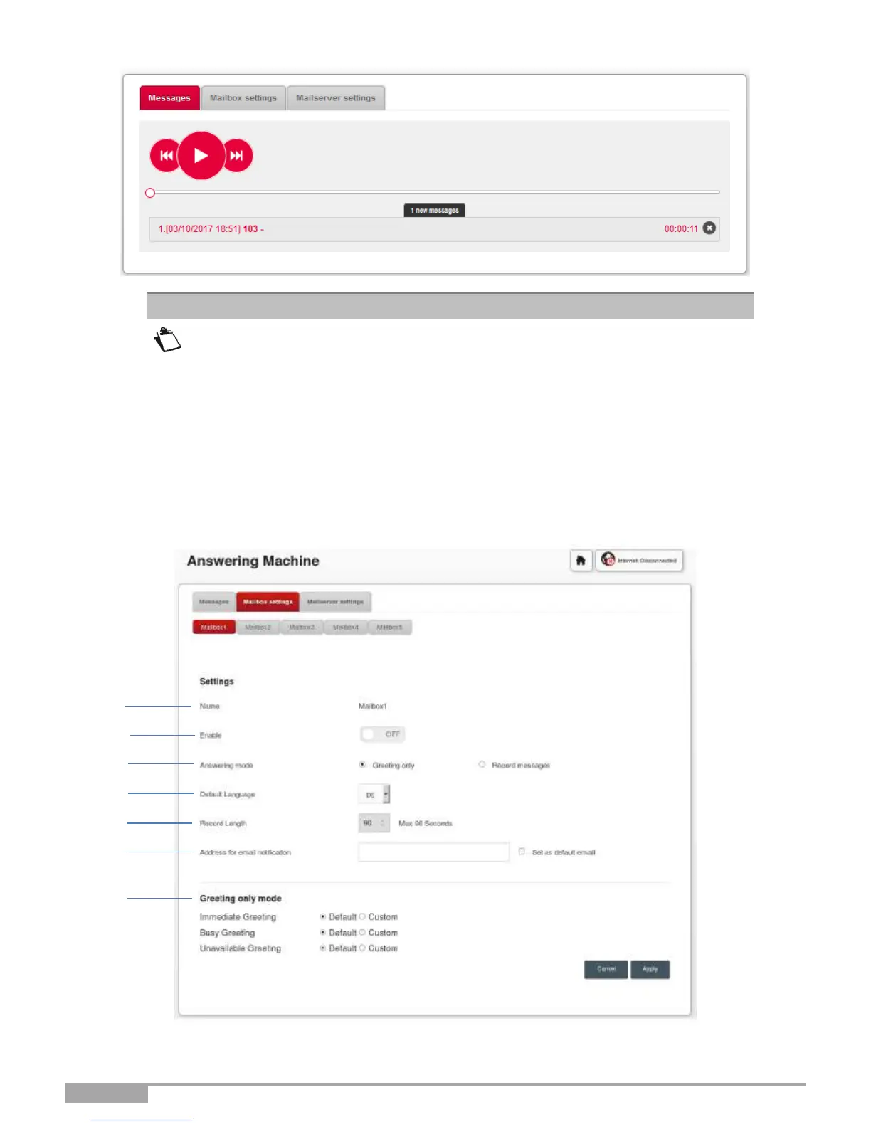 Objective: This menu is used to set up the settings for each of the answering machines.