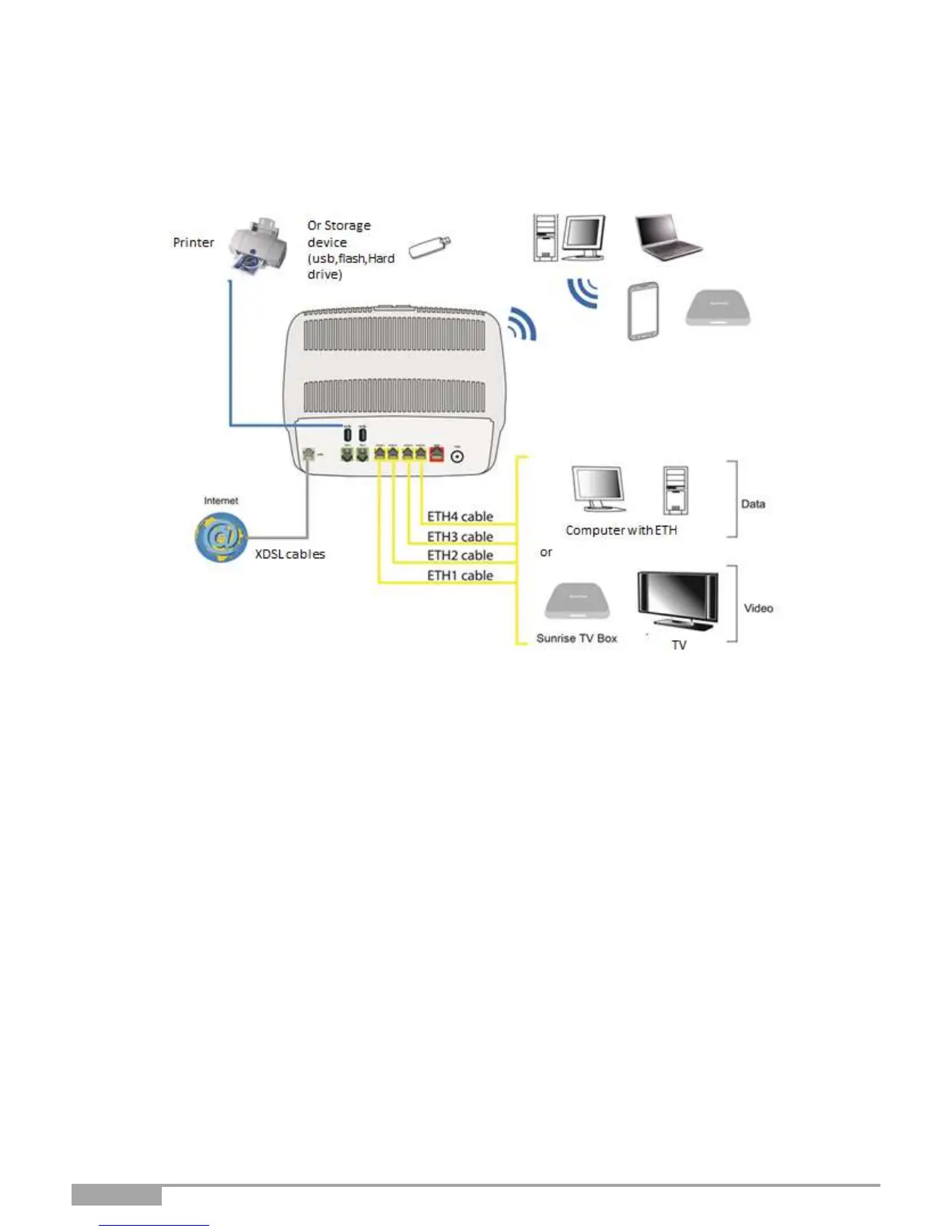Sunrise Internet Box - Connecting the Ports of Your Sunrise Internet Box; Figure 2.2 - Interconnection of Ports of Sunrise Internet Box