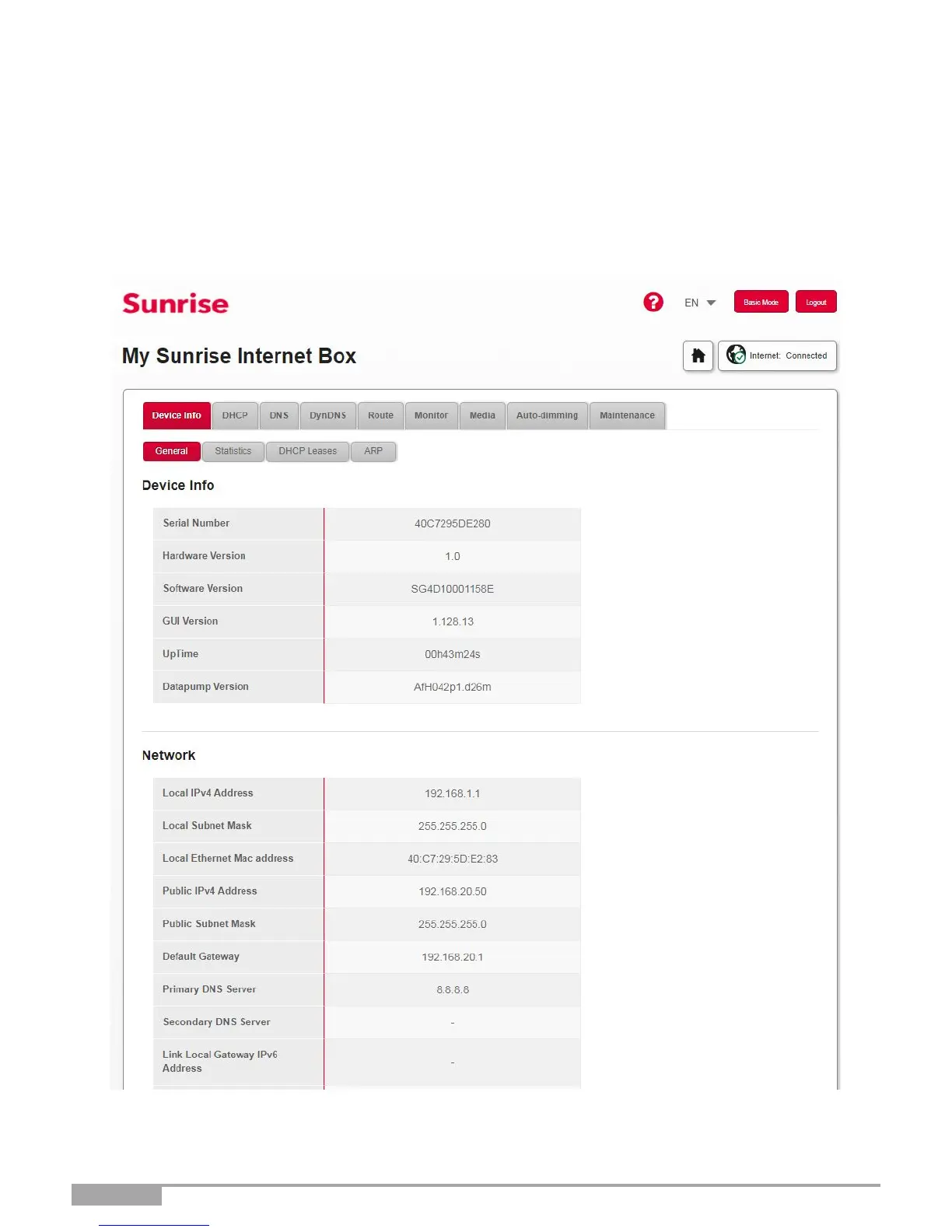 Sunrise Internet Box - Device Info