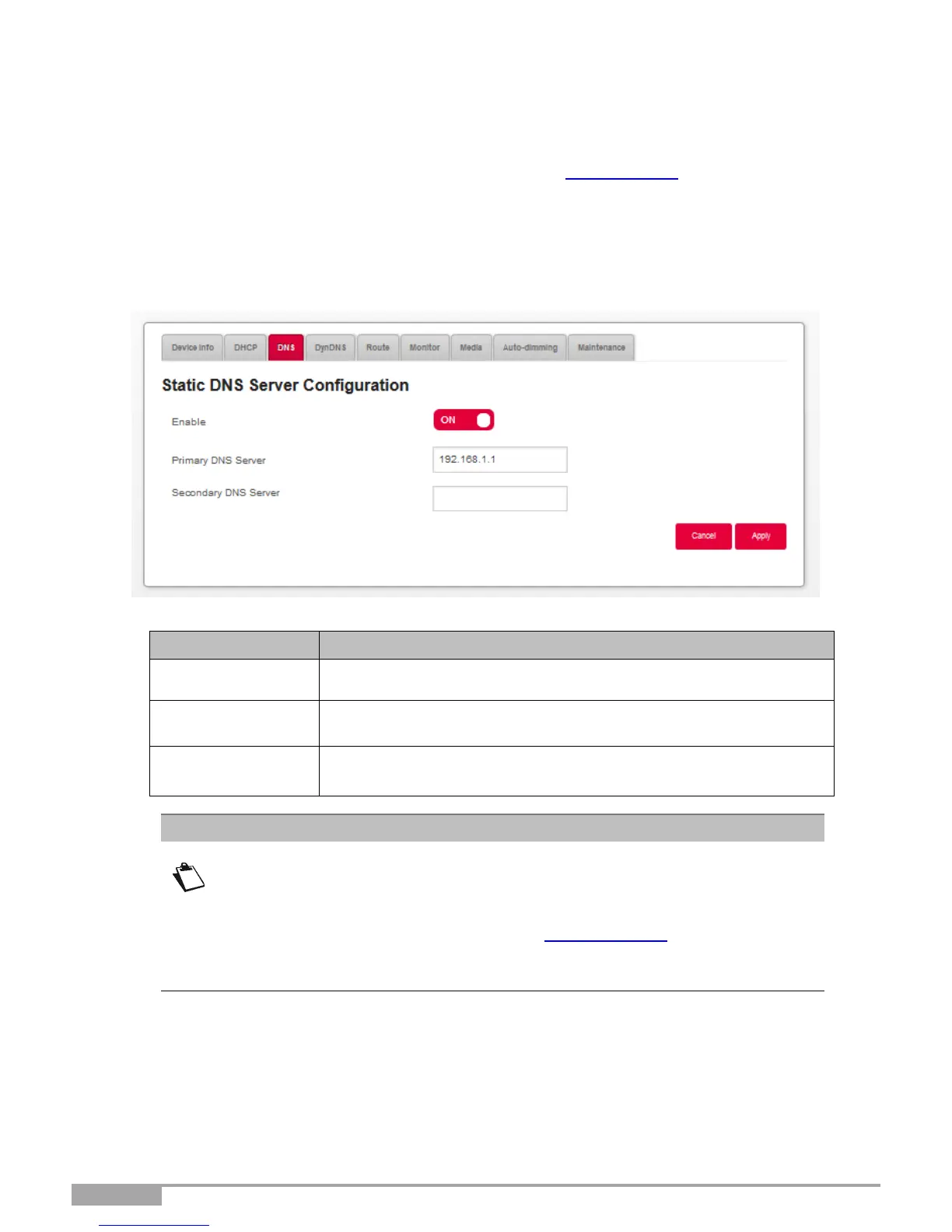 Press the button ON/OFF to activate or deactivate static DNS