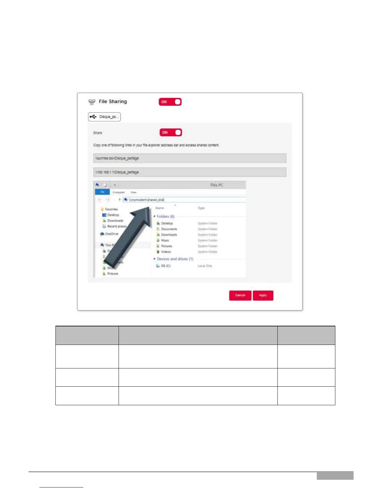 File sharing settings