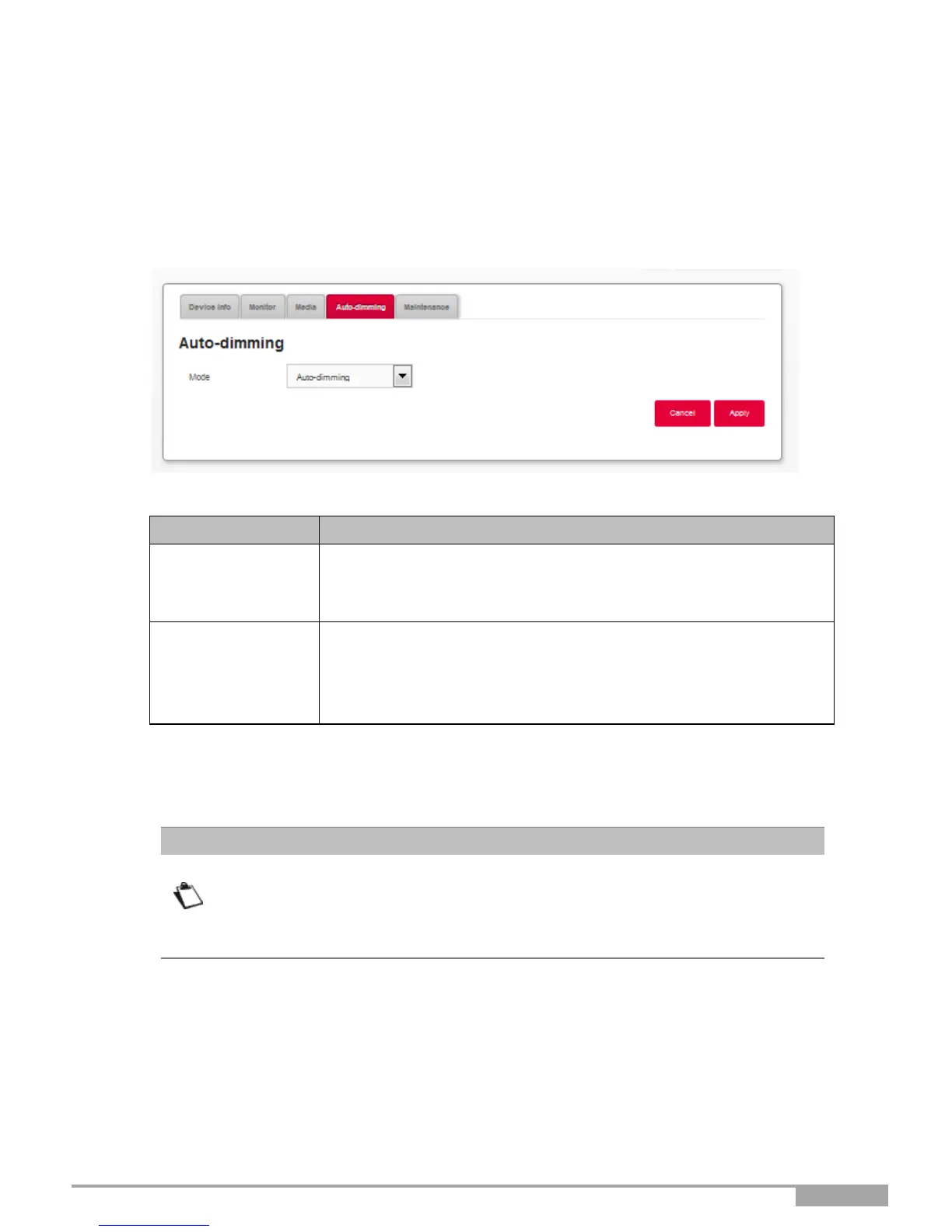 a. This field only appears when "Manual" is selected in Mode field. Auto-dimming is disabled in