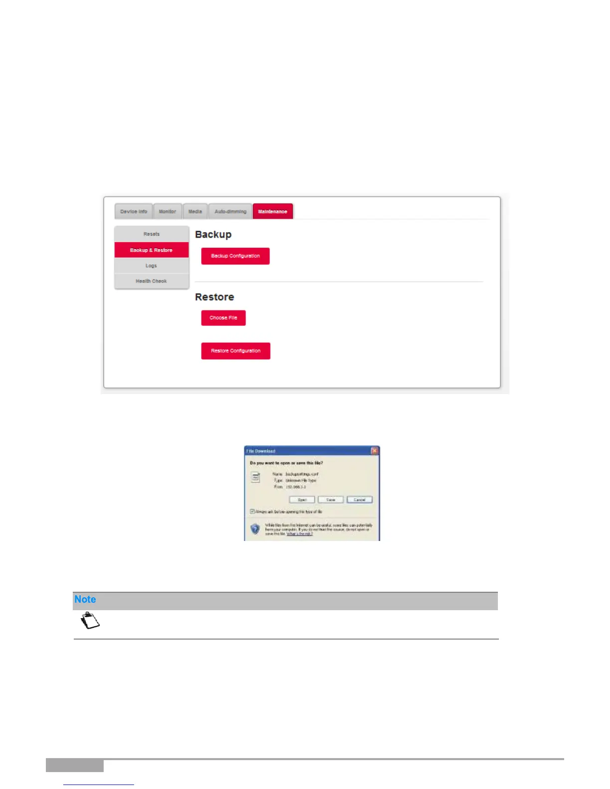 In the My Sunrise Internet Box menu, select Maintenance > Backup &