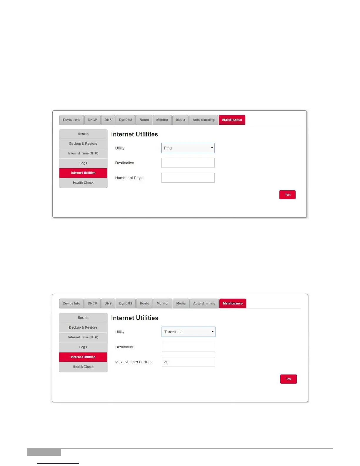 In the My Sagemcom Box menu, select Maintenance > Internet Utilities. Ping