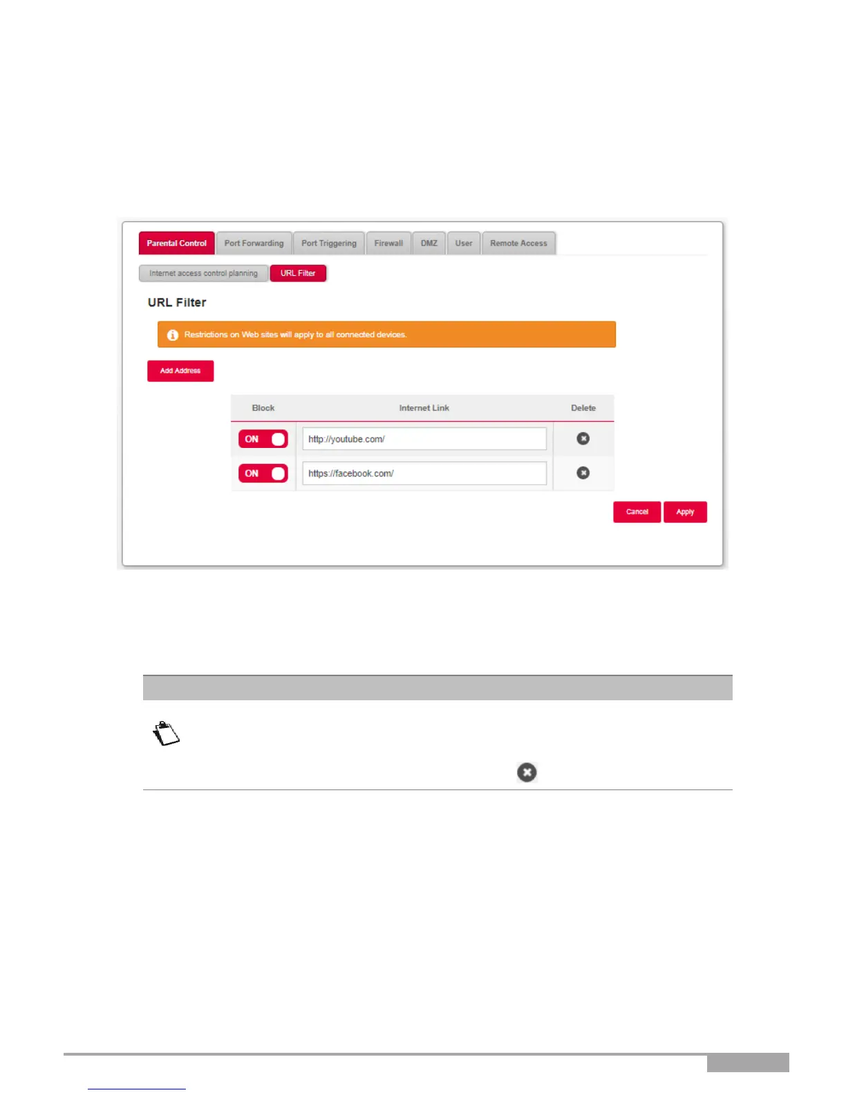 Objective: This menu is used to create and manage URL access restriction for all LAN devices that