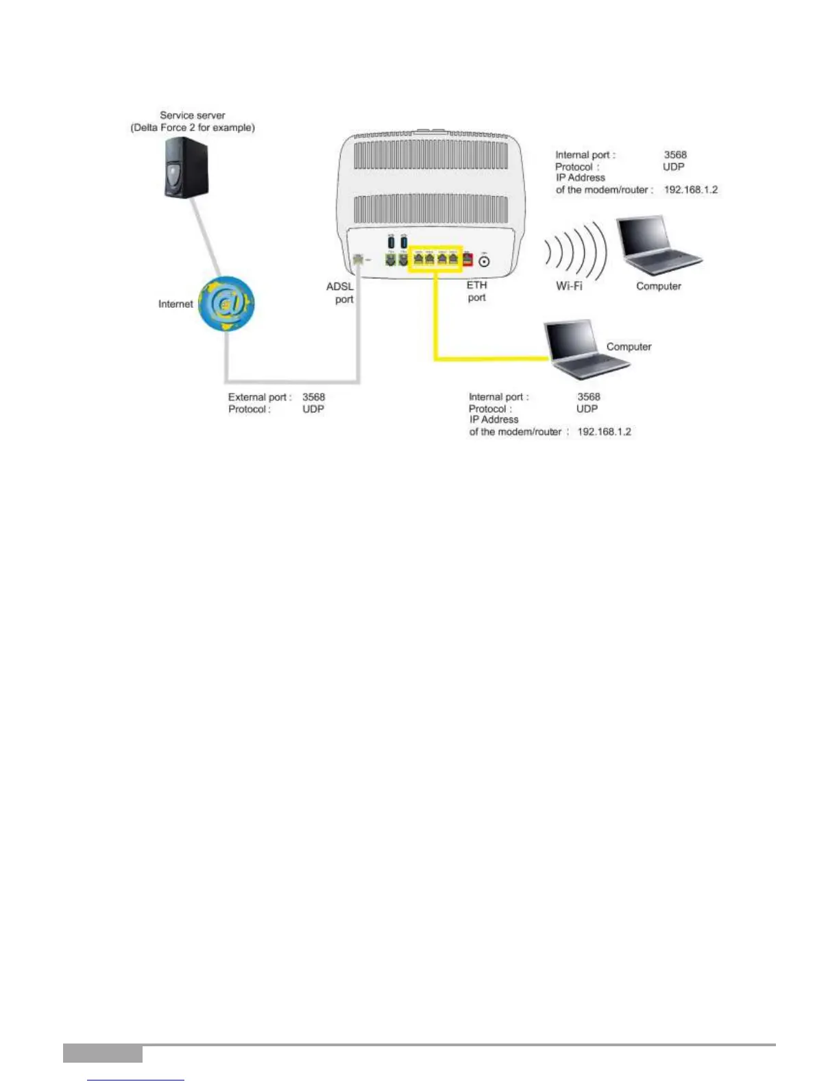 The "Delta Force 2" service is available on your computer via the external port 3568 (WAN side) and via