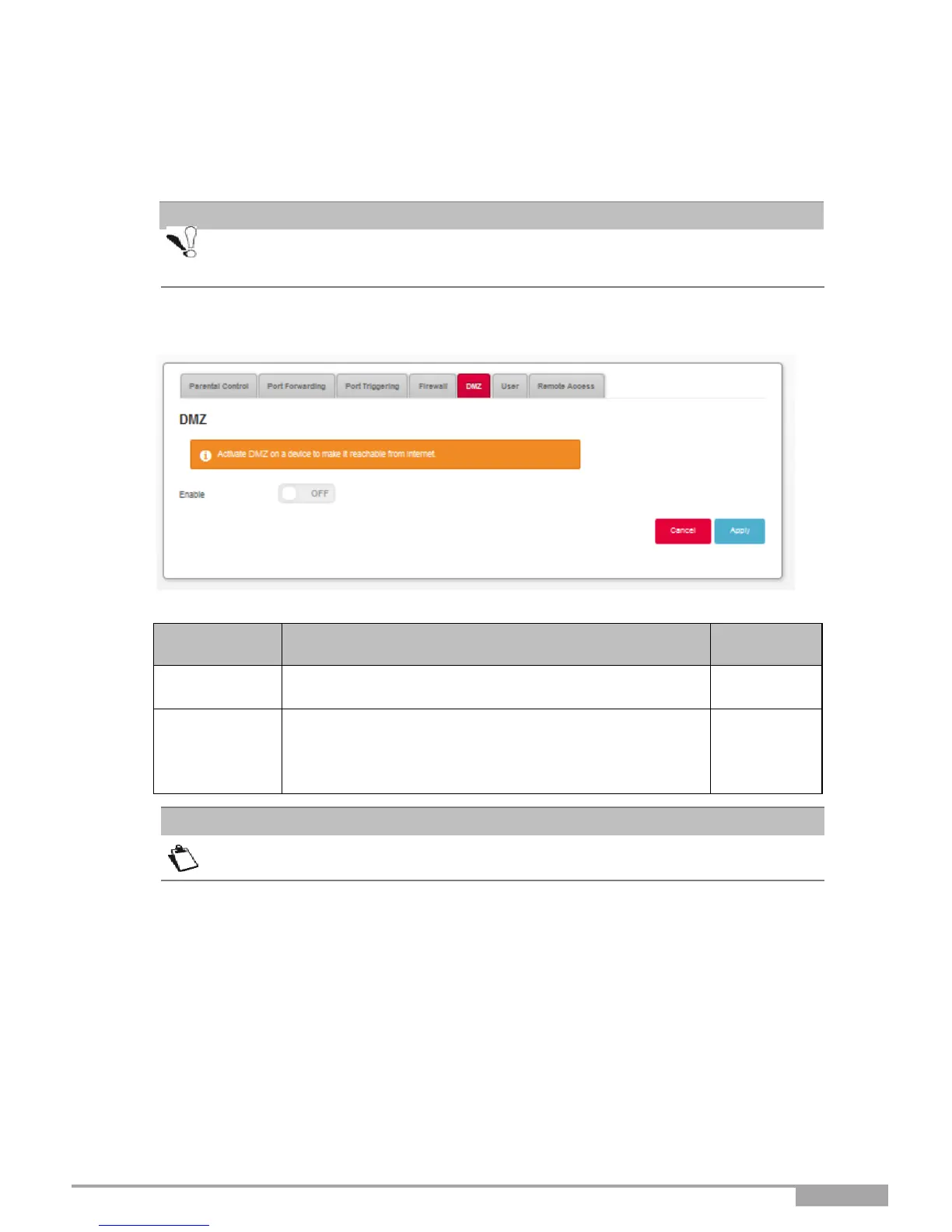 The DMZ zone is deactivated by default.