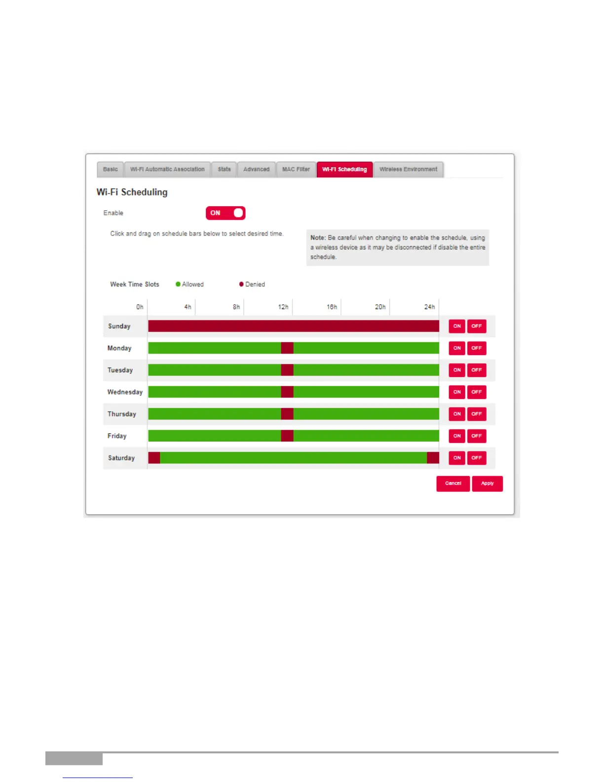 Enable the Wi-Fi scheduling feature by pressing the button for “ON”.