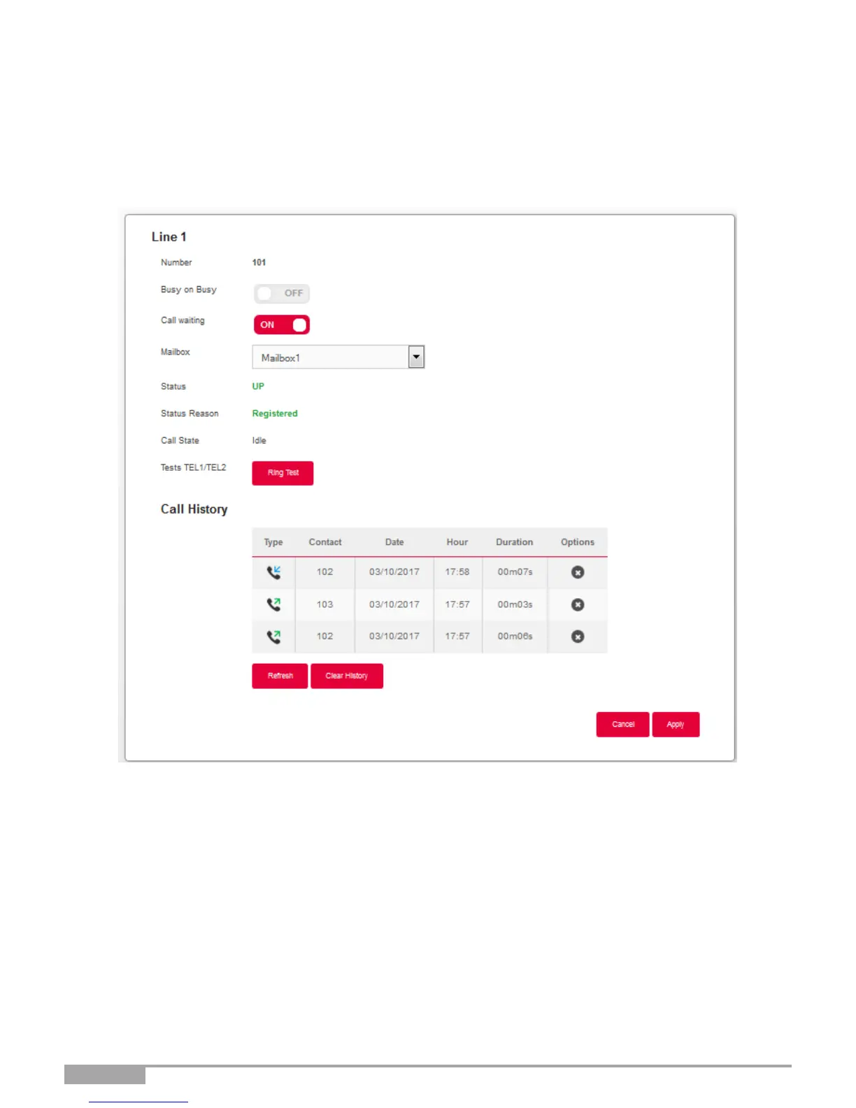 Objective: This menu displays information about your phone line and shows the Call History.