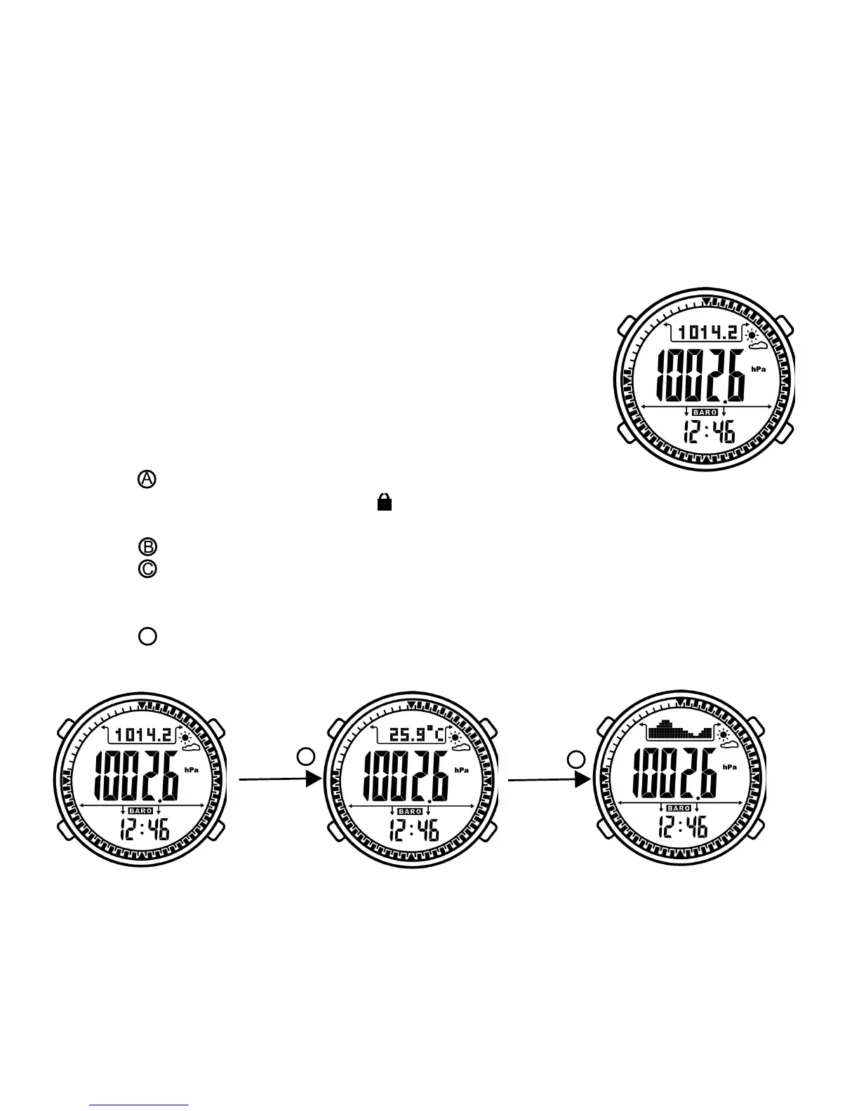 - Press to check sea level air pressure for last hour. The line of air pressure