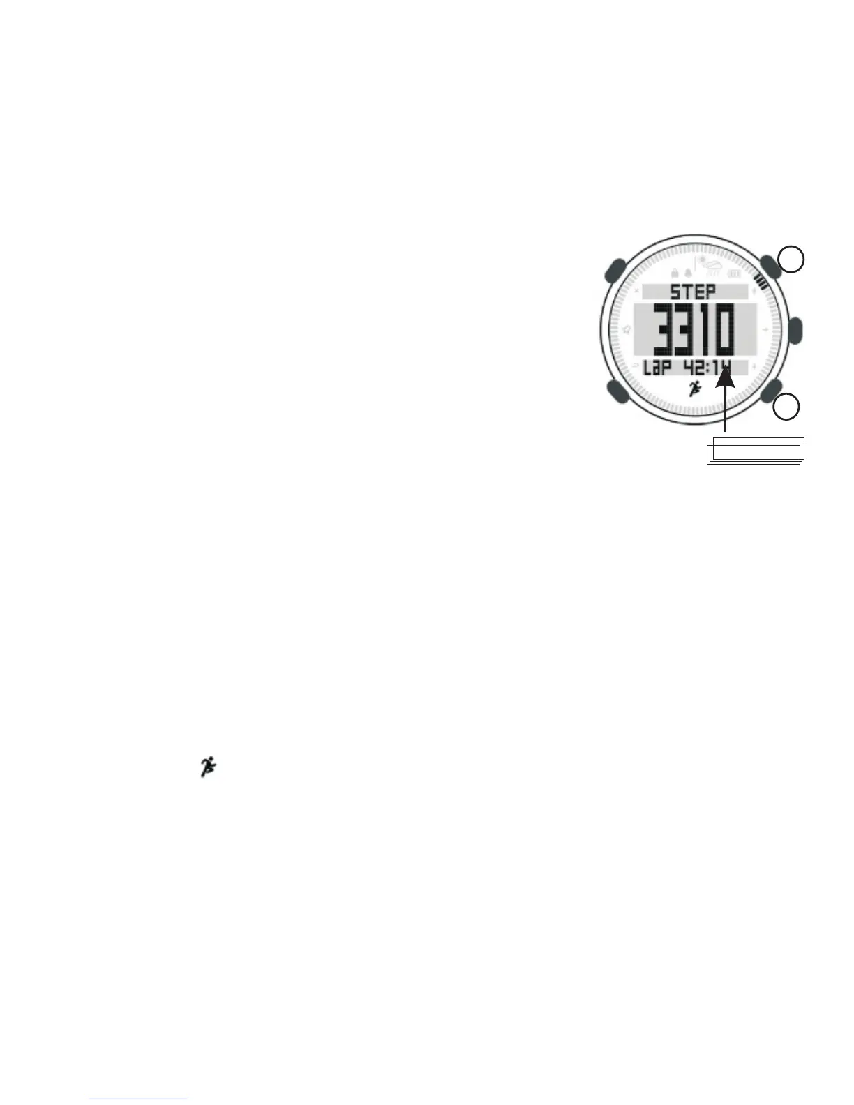 Under time mode, press [M] to enter pedometer mode.