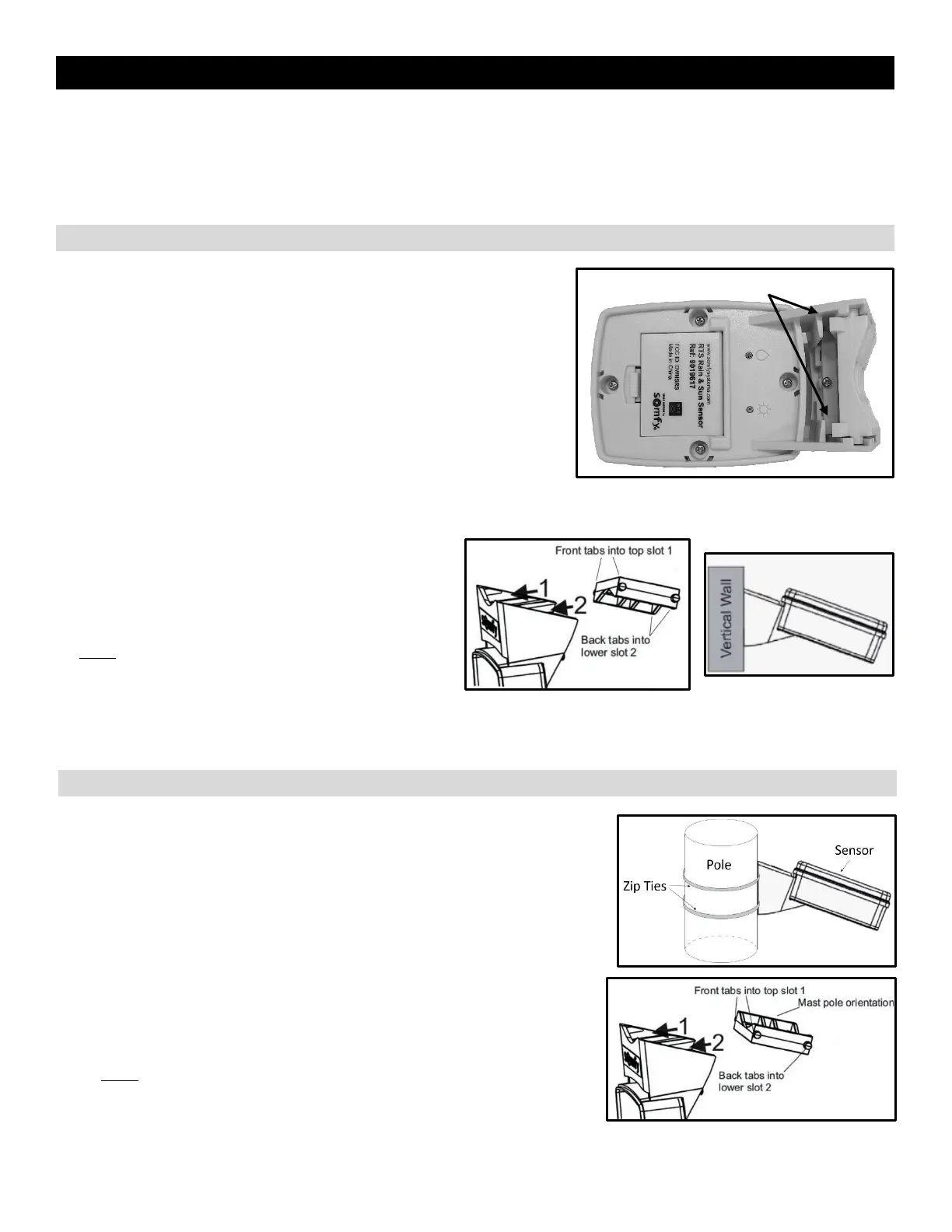 • Sensor can be mounted to a wall, gutter, or pole. Choose appropriate section below.