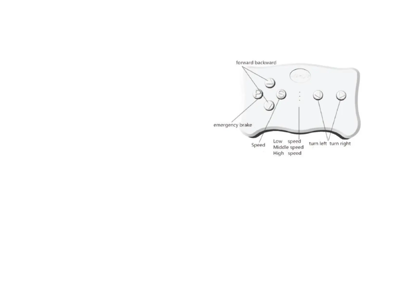 S: Speed , P: emergency brake, Press it and the running function