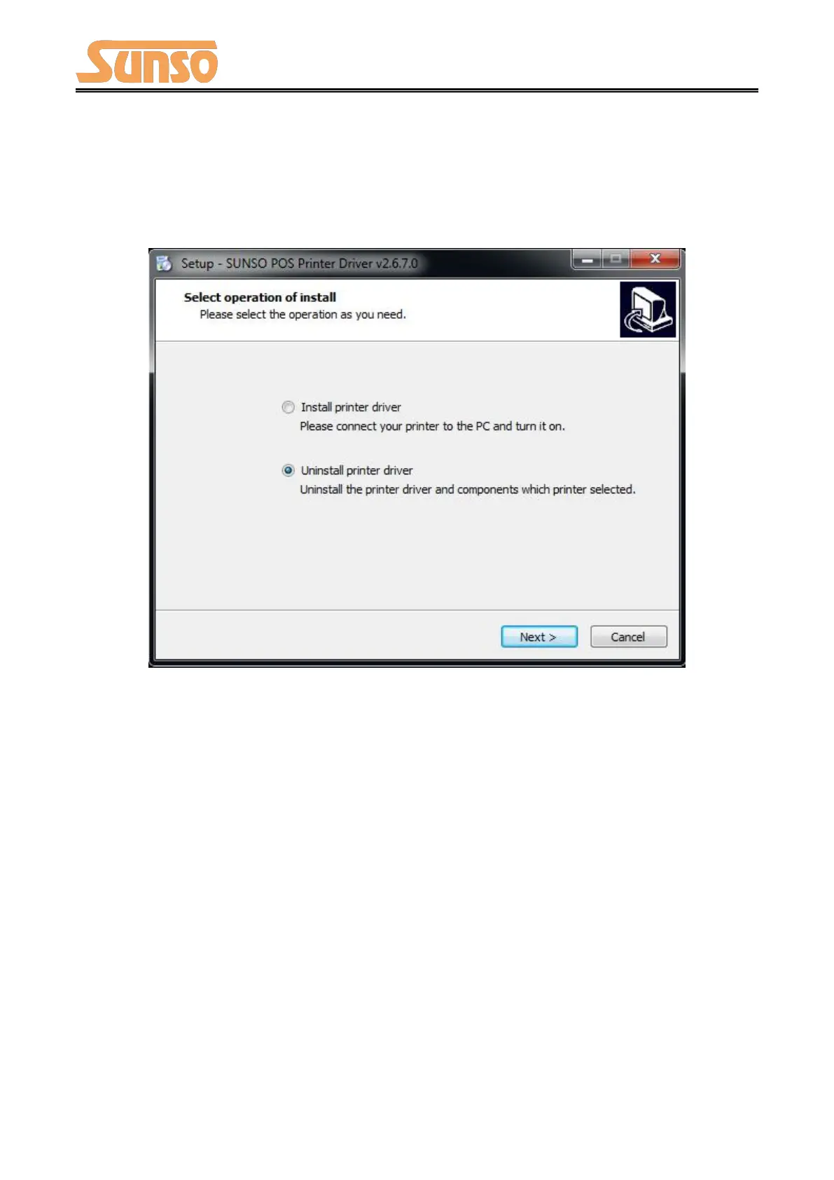 2) Choose “Uninstall printer driver, click “Next.