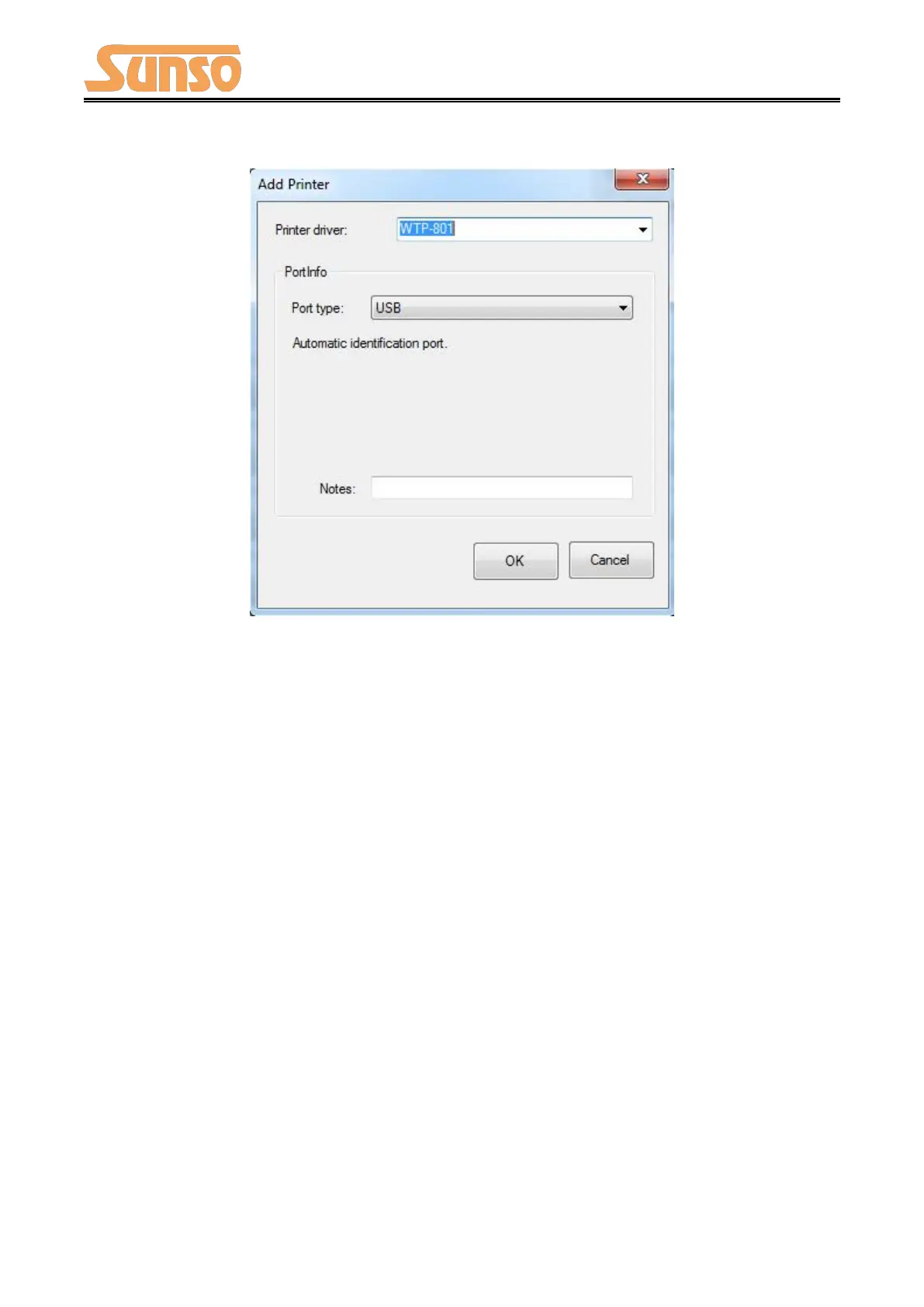 2) Choose the appropriate printer type and port. Then click “OK”. (Take WTP-801 for example.)