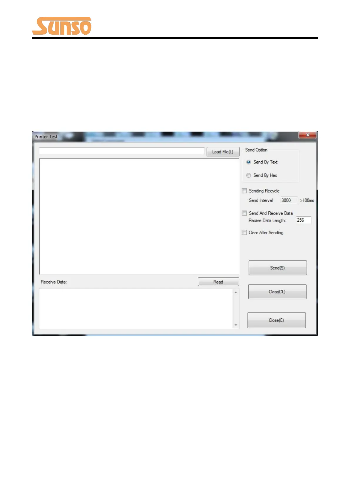 In the command test, you can send command to the printer. Input text or hexadecimal data. Select a
