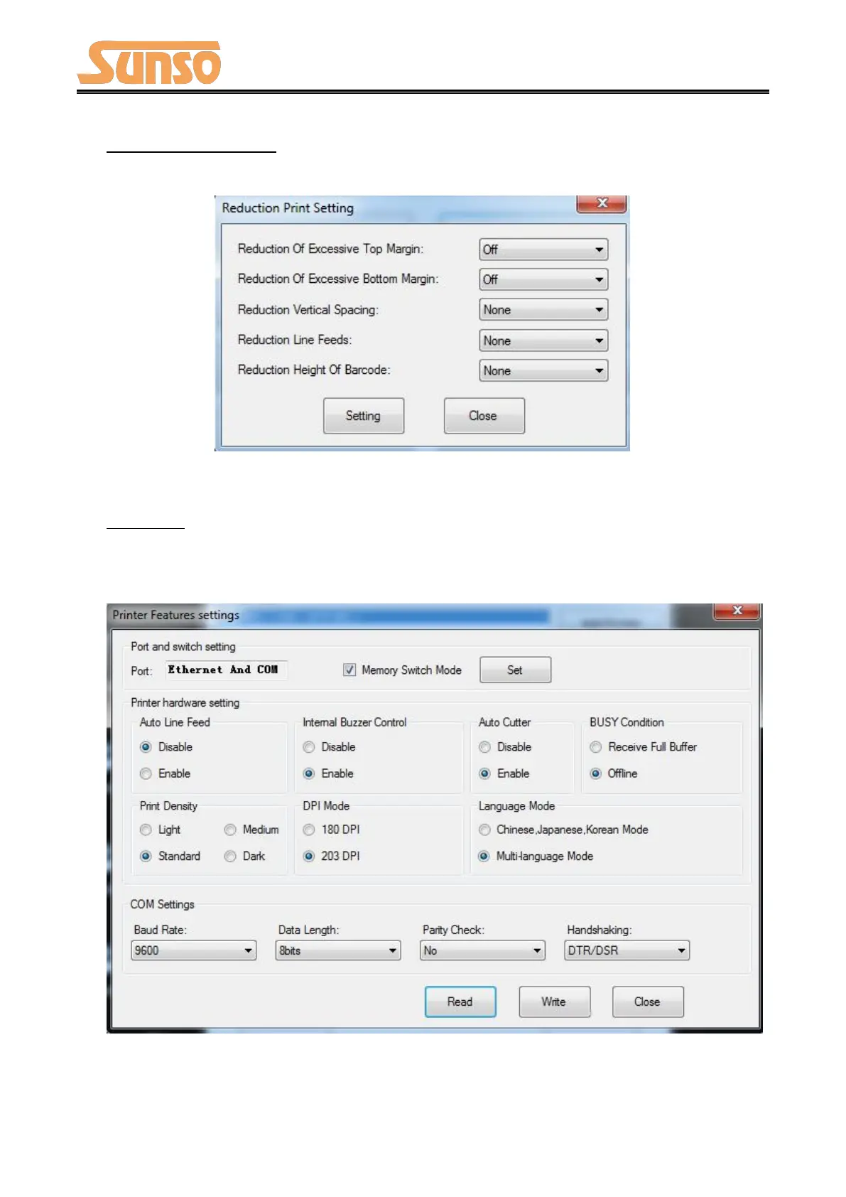 Click "Read" to get the printer parameters, click "Write" to send the modified parameters to the