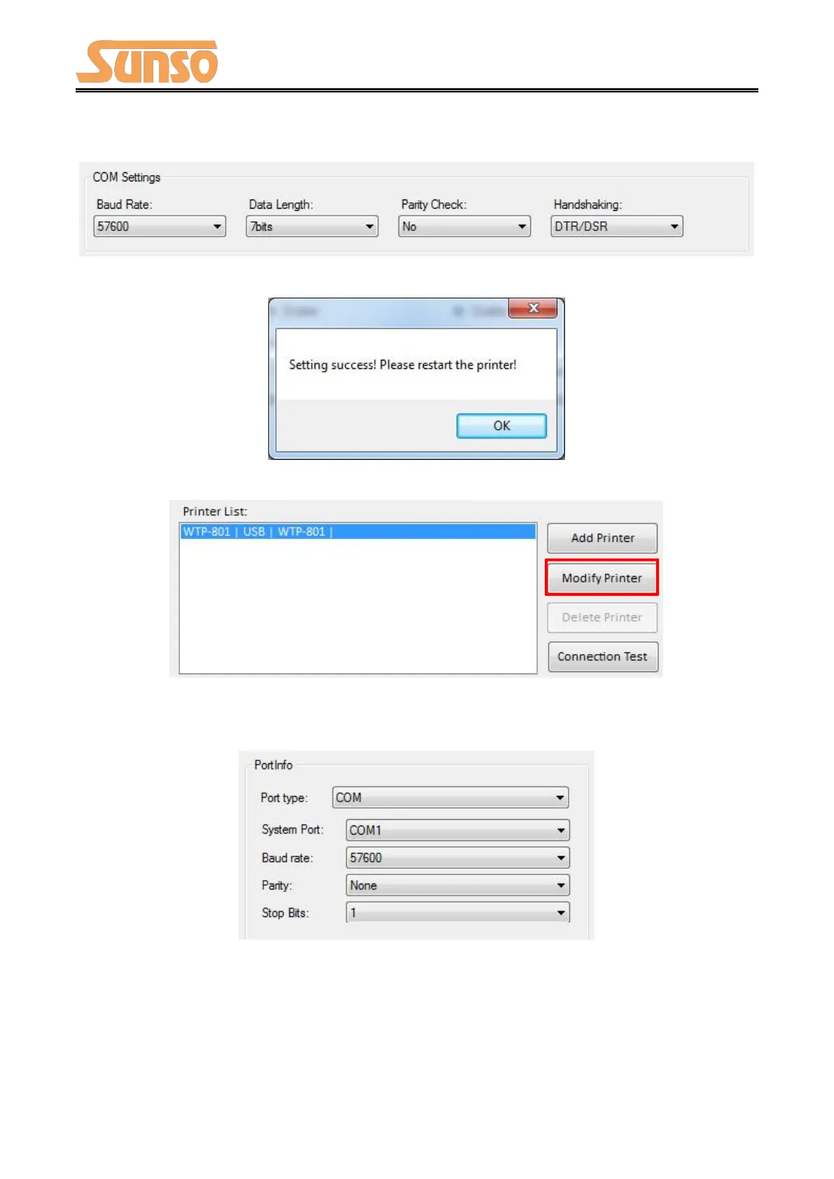 ③ Select the port category "COM" and set the baud rate to the value "57600" as shown above, and