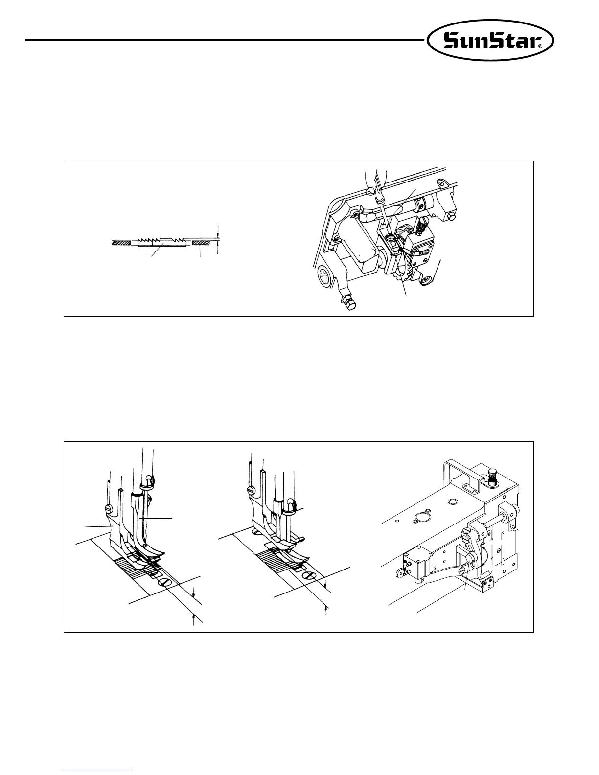 the needle plate top. After adjustment, fasten the clamp screw ④ firmly.