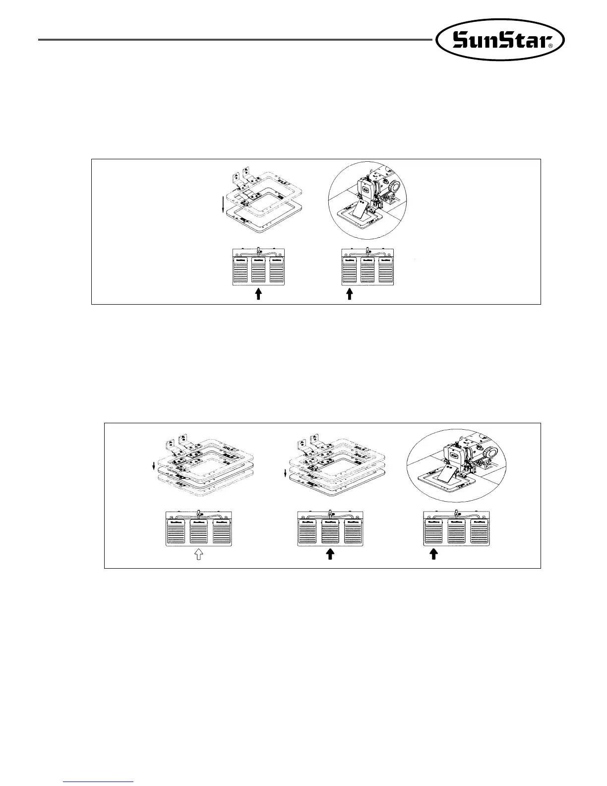 c. When the intermediate pedal ② is fully stepped, the upper feed plate fully descends to the sewing material.