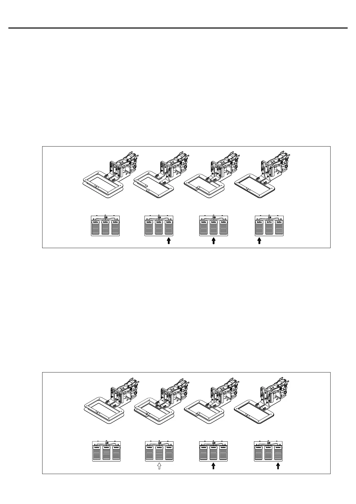 ② When the inermediate pedal ② is fully stepped, the left upper feed plate fully descends to the sewing