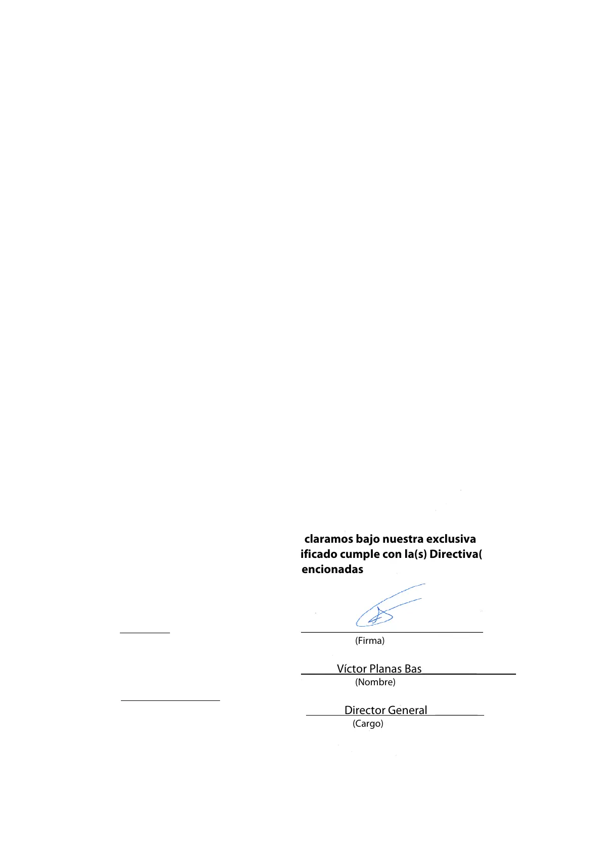 responsabilidad que el equipo especificado cumple con la(s) Directiva(s) y
