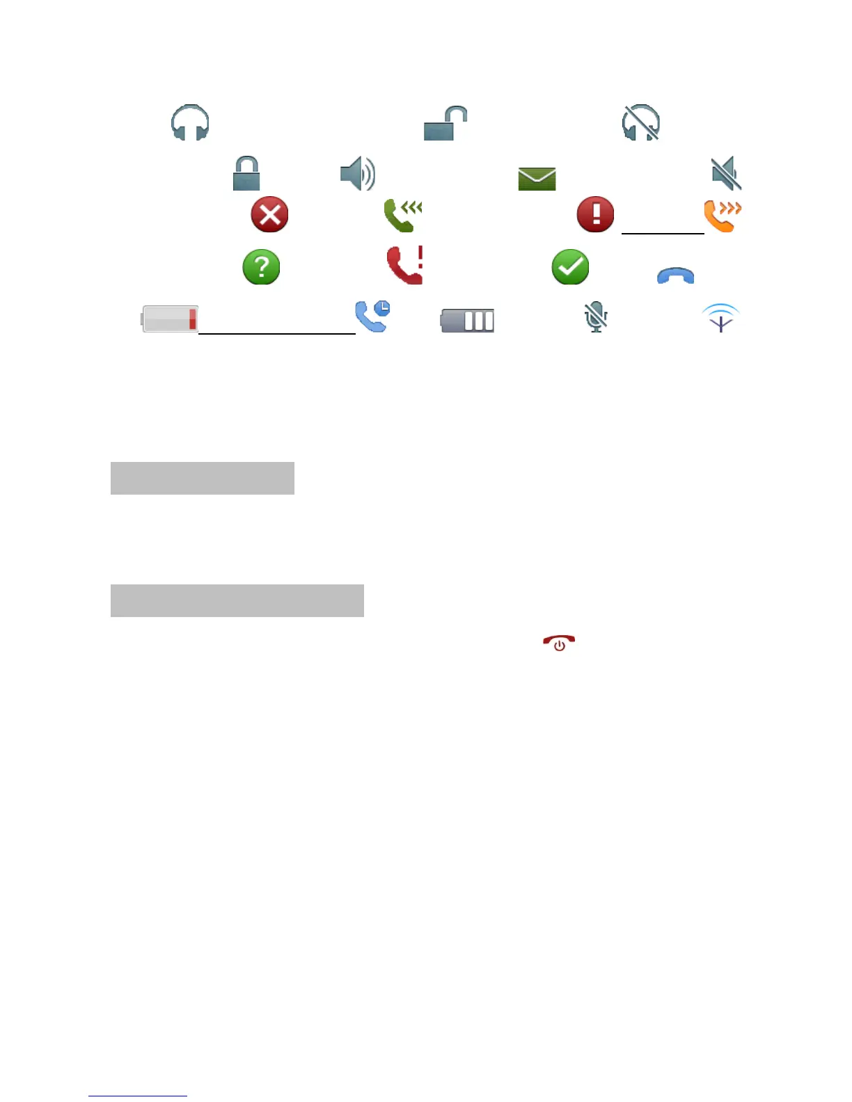 call Low battery level Wait Charging Silence