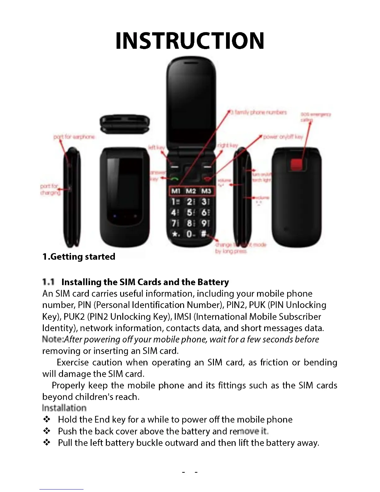 Sunstech CELT21 - 1. Getting started; 1.1 Installing the SIM Cards and the Battery